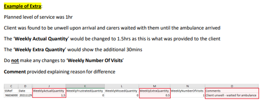 Weekly Extra Quantity – This is the number of additional hours provided in addition to the expected planned service