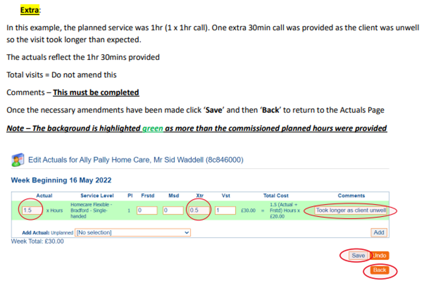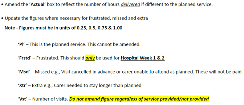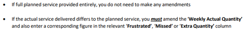 Weekly Number Of Visits – Do not amend this figure regardless of whether full planned service was provided
