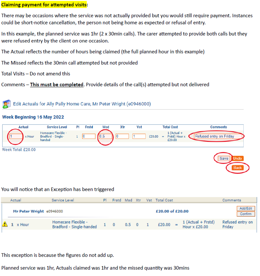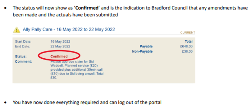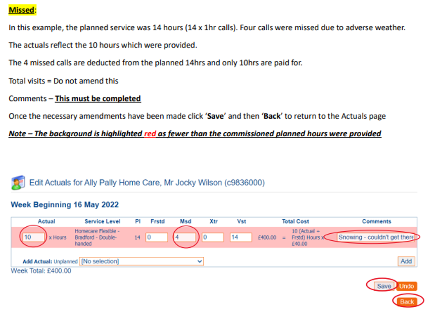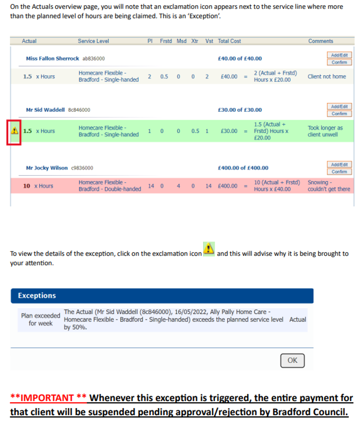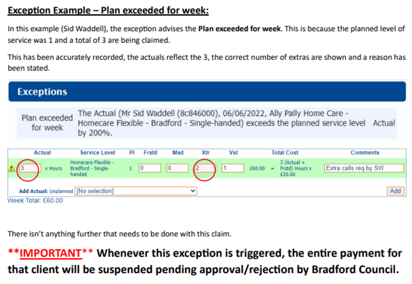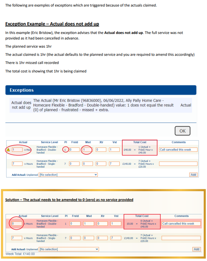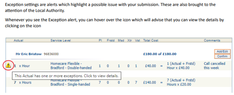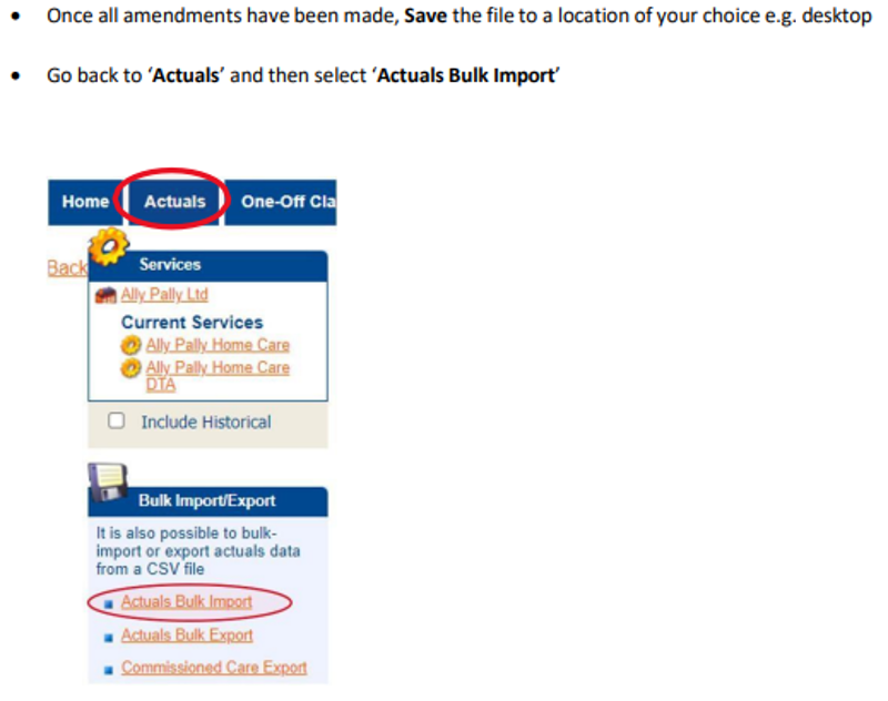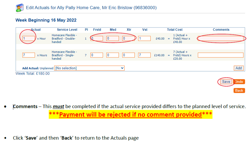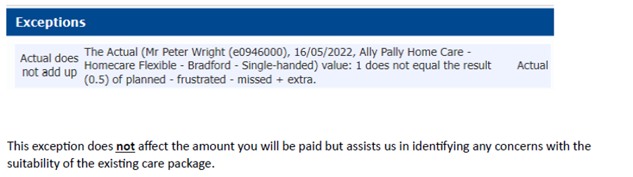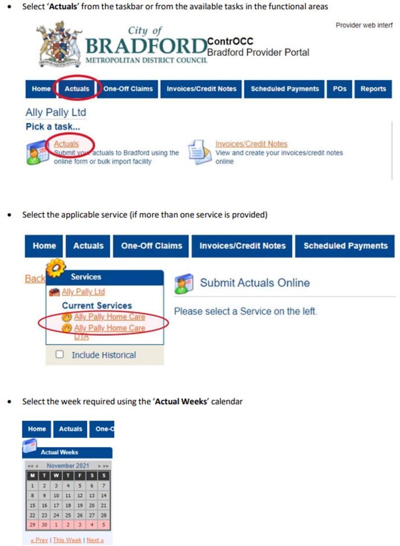 Providers are expected to complete the actuals in the portal each week by close of business on Tuesday. Delays inputting the data will impact on timely 4-weekly invoicing of customers who have to contribute towards the cost of the adult social care services they have received each week.
