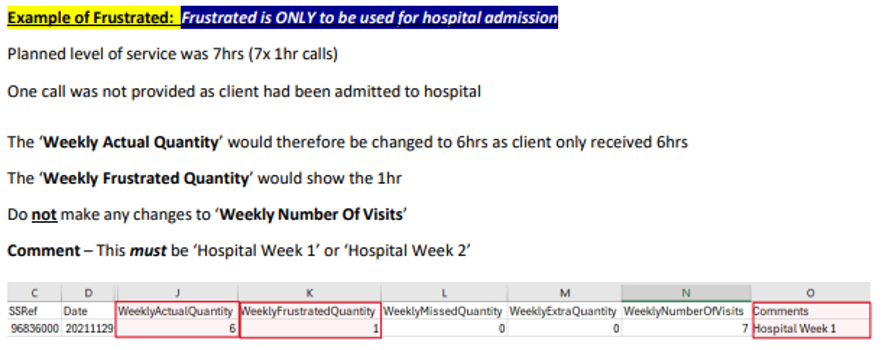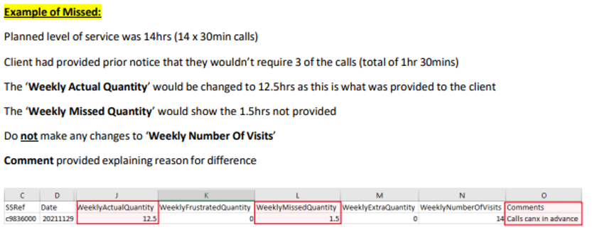 Weekly Actual Quantity – This is the numbers of hours that were actually provided to the service user