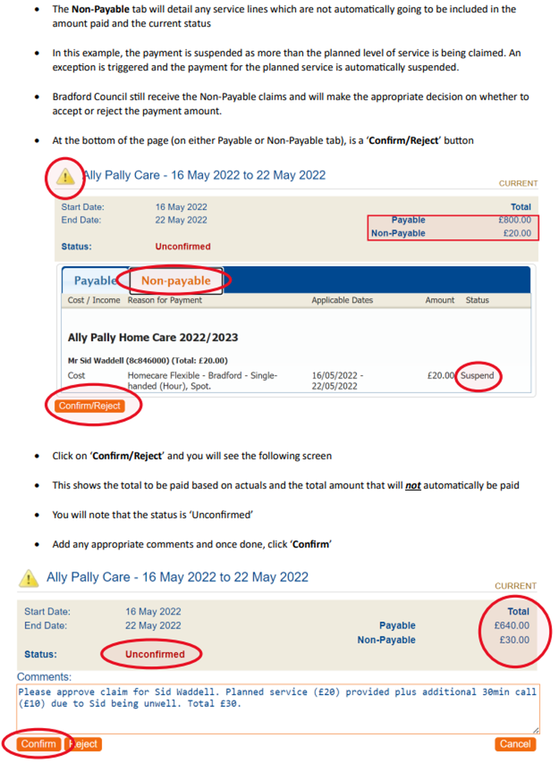 Comments – This must be completed with the reason(s) why the full planned service was not provided or where claims for additional services are being made. Failure to complete this may result in payment being rejected.