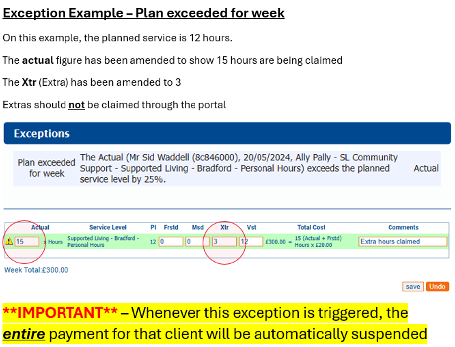 Providers must make their amendments directly into the portal for services provided in the previous week. You must confirm by close of business on Tuesdays. By doing this you are confirming that all payments and amendments are correct. Your payment will be based on what you have submitted.